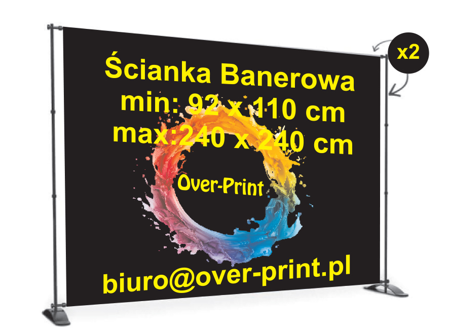 Konstrukcja działa na zasadzie rurek teleskopowych, dzięki czemu rama jest regulowana i może uzyskiwać różne wymiary. Aby zamontować wydruk, należy wykonać tunel w banerze i wsunąć w dolną i górną belkę. Minimalny rozmiar 92 x 110 cm , maksymalny 240 x 240 cm